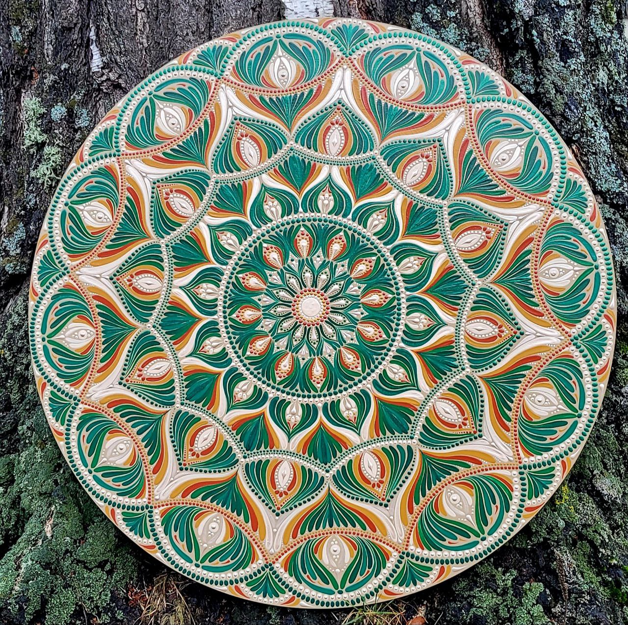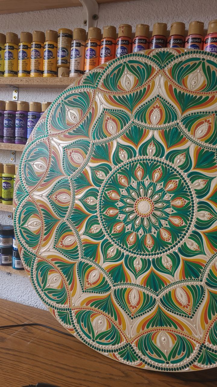 Dieses Mandala wurde von mir in liebevoller Handarbeit mit hochwertigen Acrylfarben gemalt und mit einem matten, transparentem Lack versiegelt.